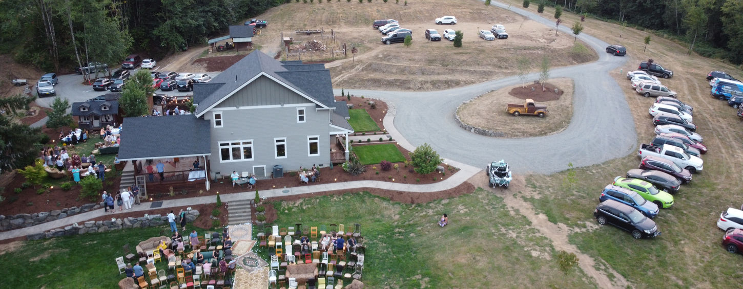 This new 8 acre venue is located in beautiful Rainier Oregon; a 40 minute drive from Portland Oregon and Vancouver Washington. Nestled down in its own private valley, the venue has a classic forest / backyard feel but with that blank slate to create your dream wedding. Surrounded by mature trees and completely wheelchair accessible, there are multiple ceremony & reception locations to choose from. You will have access to a cozy campfire spaces & a spacious wood covered deck for all your wedding plans. Enjoy the paved paths around the house, gravel parking and mini trails in the woods. Guest capacity at 200 with on site parking to accommodate. Inquire about custom and all inclusive packages.